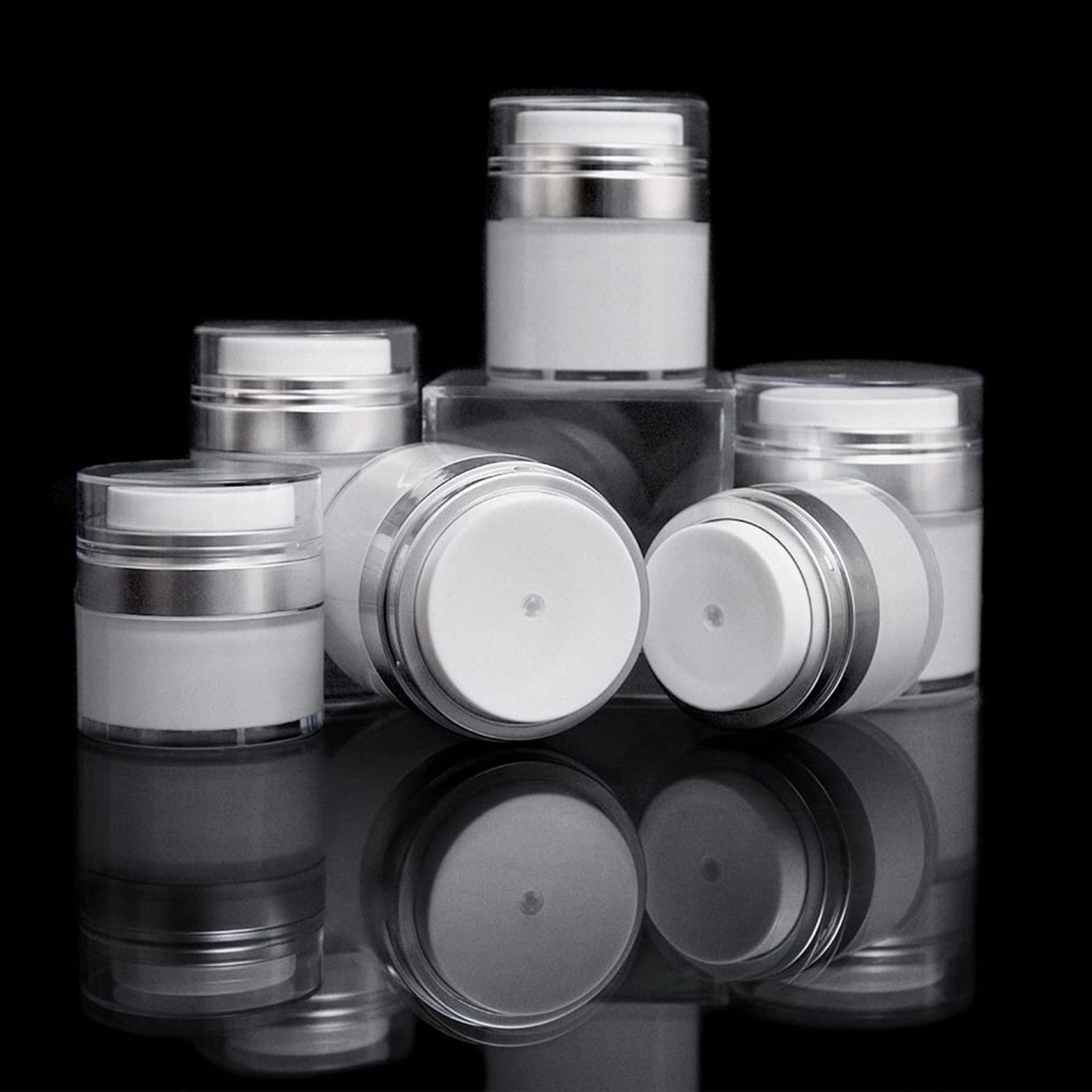 This 30 ML Matte Silver Airless Jar is a great option for your cosmetic packaging needs! Order your acrylic cosmetic jar online at wholesale pricing — no minimum order quantity required. For the in other colors and sizes. view the entire? online.